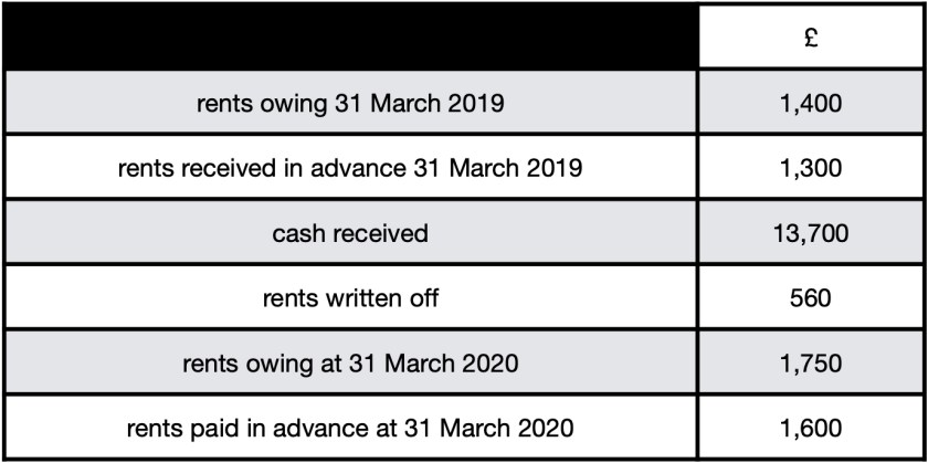 The table below gives data about rental income for the year ended 31 March 2020.