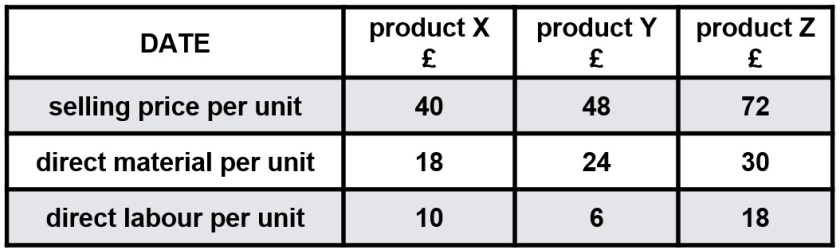 A company makes three products for which the following details are given.